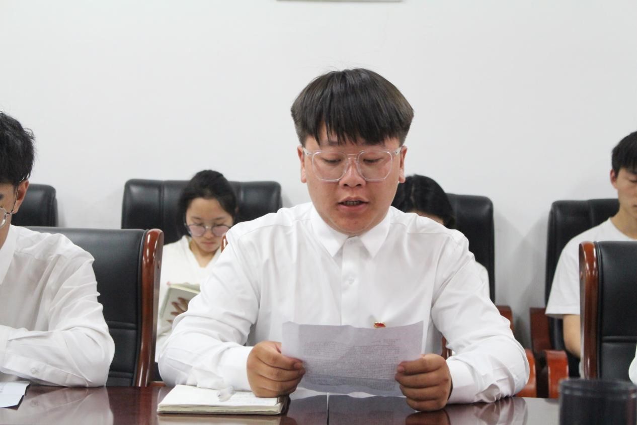 会议重温了习近平总书记在纪念五四运动100周年上的重要讲话,传达学习了校党委书记阮凤斌在学校“挺膺担当,强国有我”五四青年座谈会上的讲话精神。