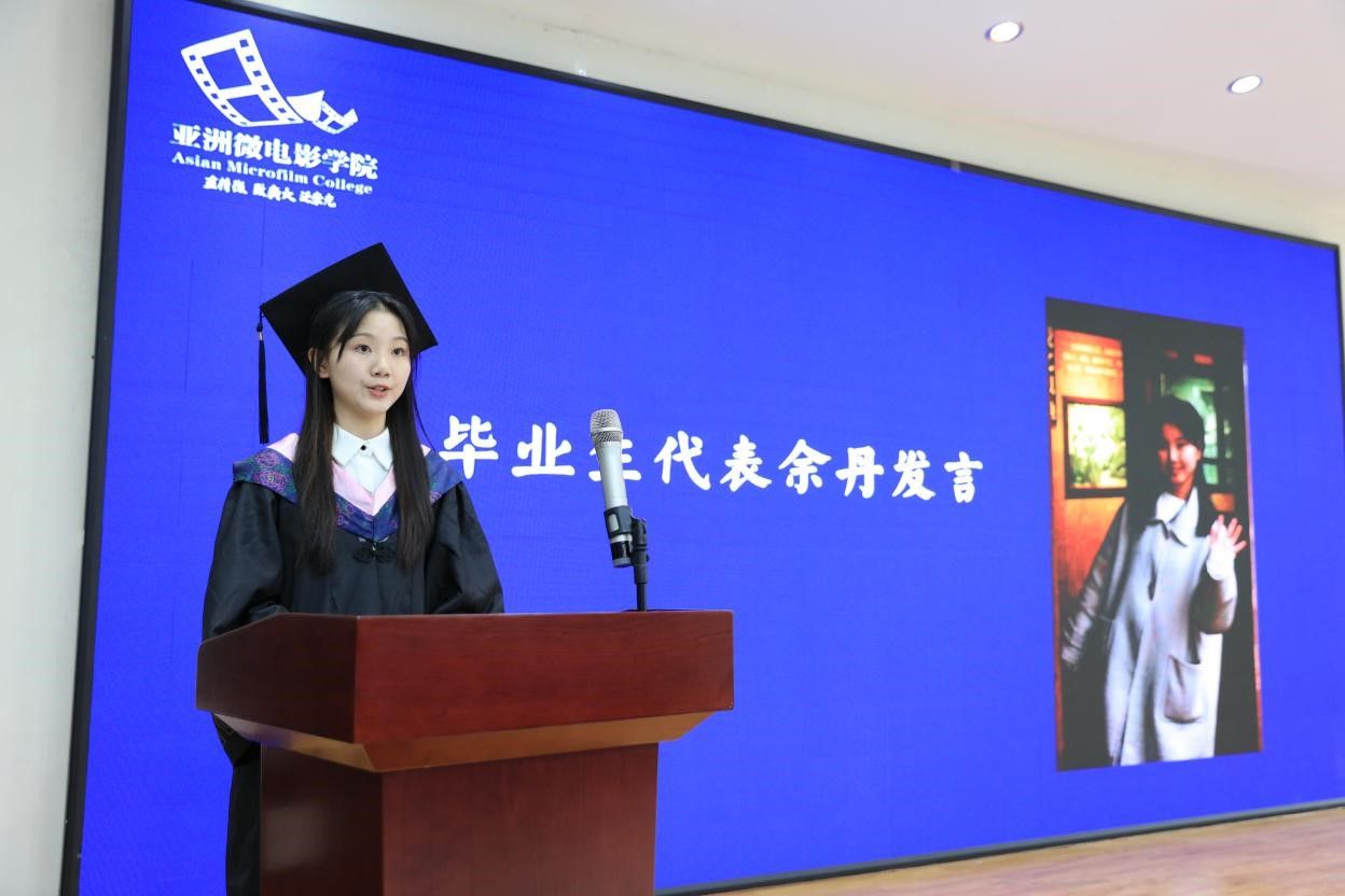 亚洲微电影学院党总支副书记、院长石安宏代表全院师生做毕业致辞,他向毕业生表示最热烈的祝贺,祝贺他们顺利完成学业,向即将踏入新的人生阶段的毕业生提出了“知己知彼,百战百胜”“千帆竞发,奋楫者进”“行而不辍,未来可期”的要求和期待,希望他们能够在未来的人生道路上越走越宽广。