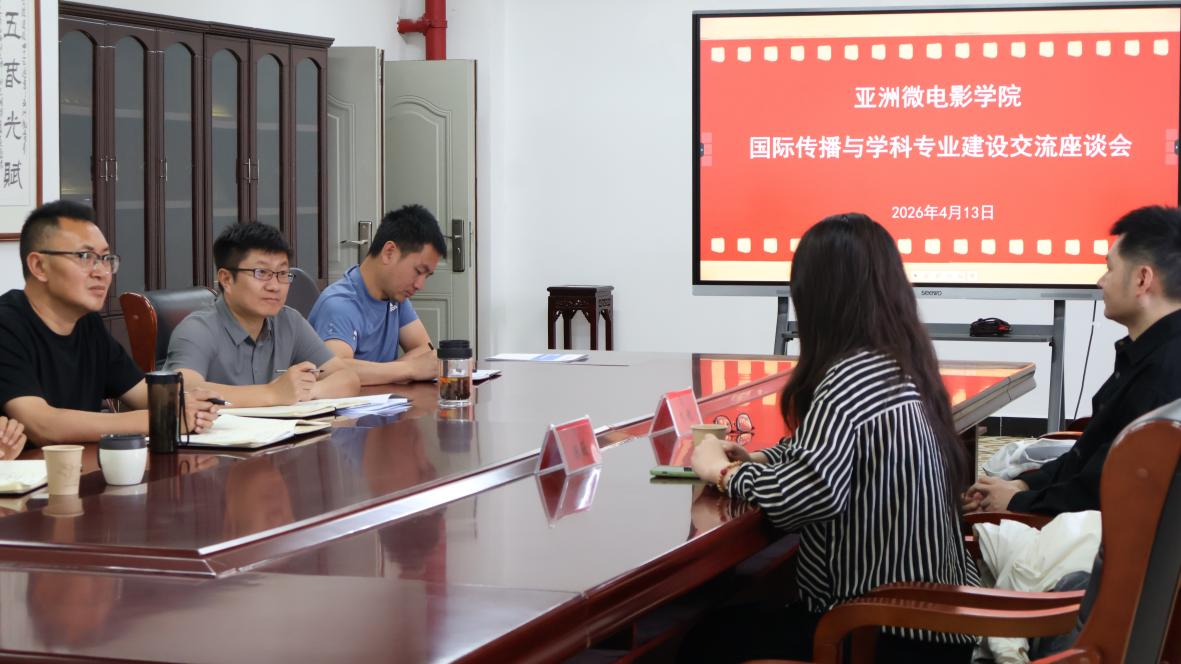 为深化国际传播人才培养,推动学科专业高质量发展,4月13日,华中科技大学新闻与信息传播学院教授、博士生导师,大数据与国家传播战略教育部哲学社会科学实验室副主任、国家传播战略研究院副院长陈薇教授,华中科技大学新闻与信息传播学院副教授、硕士生导师,新闻评论研究中心研究员刘锐副教授到访亚洲微电影学院,与我院教师开展国际传播与学科专业建设交流座谈会。学院班子成员及教师代表参加会议,围绕党建引领、学科建设、国际传播等核心议题展开深入研讨。