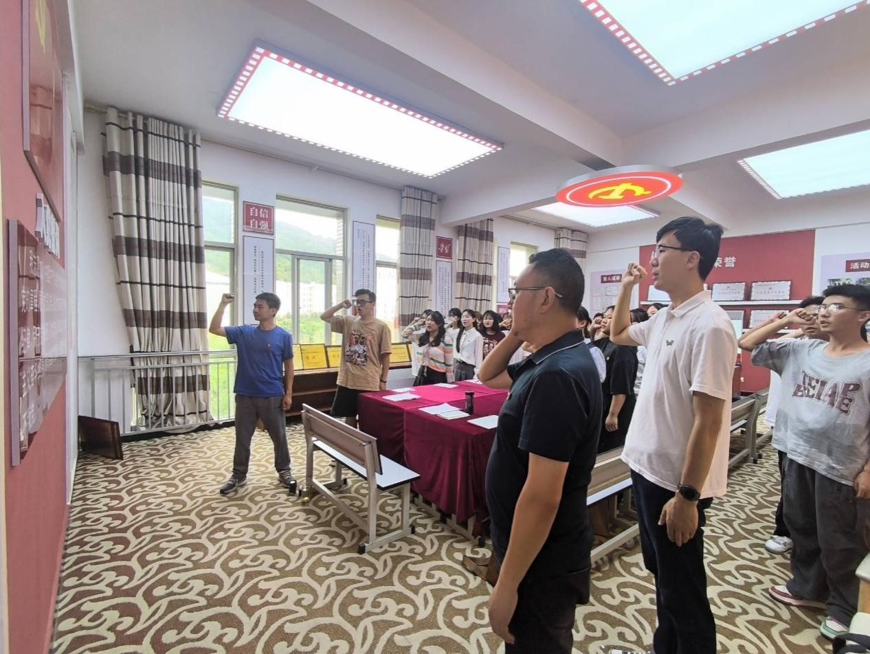 “我志愿加入中国共产党,拥护党的纲领,遵守党的章程,履行党员义务,执行党的决定,严守党的纪律,保守党的秘密,对党忠诚,积极工作,为共产主义奋斗终身,随时准备为党和人民牺牲一切,永不叛党。”在学院党支部书记李云勇的带领下,全体党员面向党旗,重温了入党誓词,用铮铮誓言展现了对党的绝对忠诚。