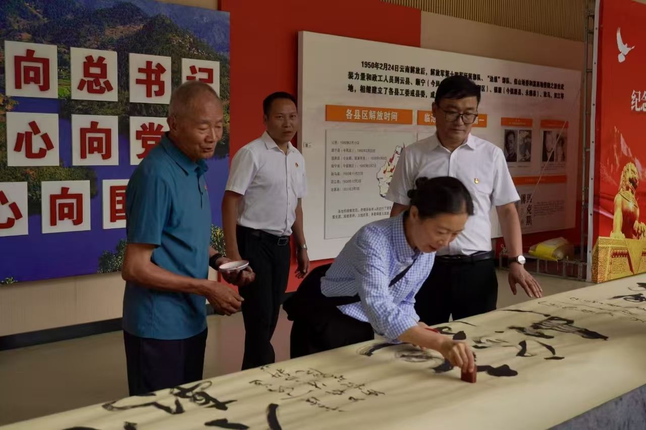 活动现场,师生代表与临沧知名书法家共同创作80米书法长卷,以笔墨寄托对英雄的缅怀与对和平的珍视,现场气氛庄重而热烈。