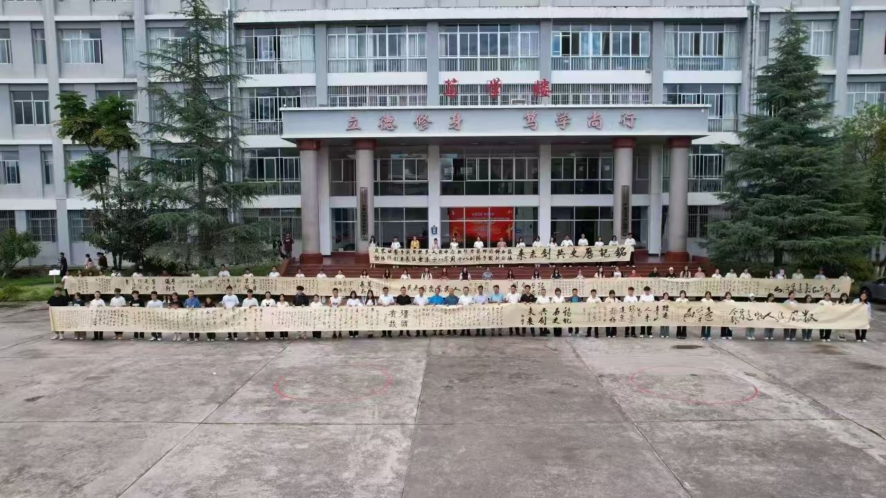 创作结束后,师生代表共同展示完成的80米书法长卷,定格下这场兼具文化气息与红色主题的盛大活动。
