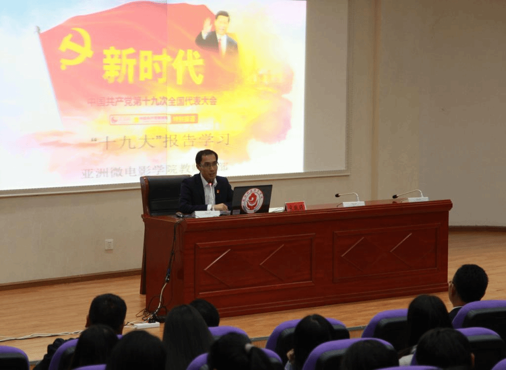 近日,亚洲微电影学院党总支组织委员、教师支部书记宋振旺老师,在致真楼报告厅作题为《不忘初心 牢记使命---仰望星空 脚踏实地》党的十九大报告精神宣讲,亚洲微电影学院全体师生参加宣讲会。