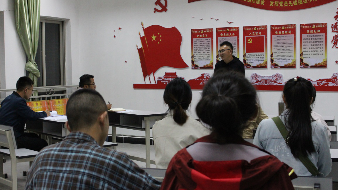 (文、图/刘露)2019年11月12日晚,亚洲微电影学院党总支书记刘绍彬在党员活动室为师生讲授主题教育专题党课,学校“不忘初心、牢记使命” 主题教育第七指导组组长、校党委委员、党群工作处处长施勇列席会议。