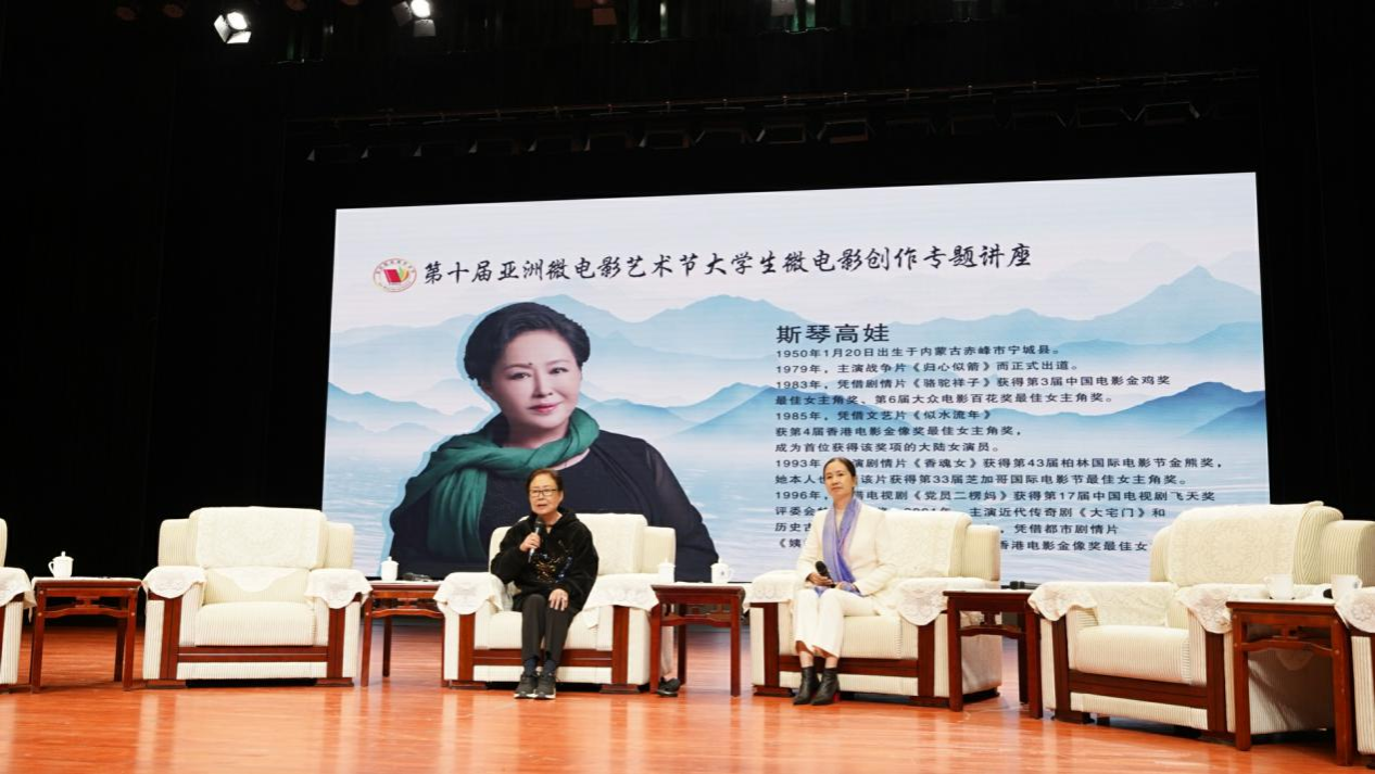 亚洲微电影学院常务副院长斯琴高娃老师与在场师生进行了亲切的对话,她回顾了自己成长的经历,她表示将继续支持亚洲微电影学院的发展,激励同学们保持热爱、保持初心、勇敢追求。