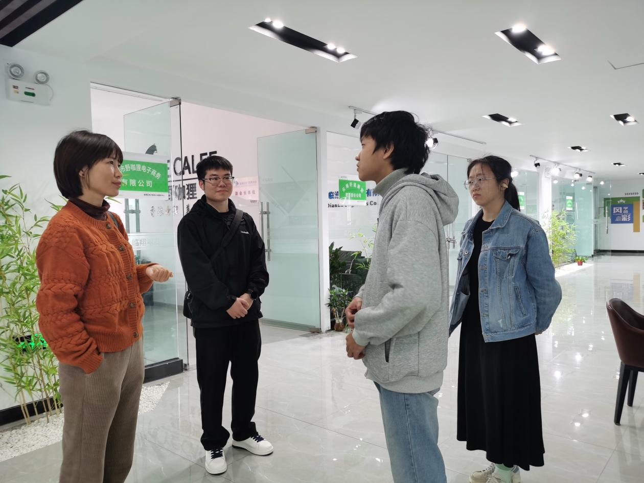 首先,刘绍彬一行与在岗实习生进行了深入交谈,了解学生的实习动态,关切其遇到的困难,并就实习工作纪律、未来就业准备等进行了殷切的嘱托。随后,参观了电商中心产品展示区和办公区,详细了解了电商中心的运营模式、组织架构和相关业务发展情况。最后,与临翔区商务局电商中心主任杨滔就学生实习情况、行业发展现状、校企合作前景、实践课程共建等进行了深入研讨。