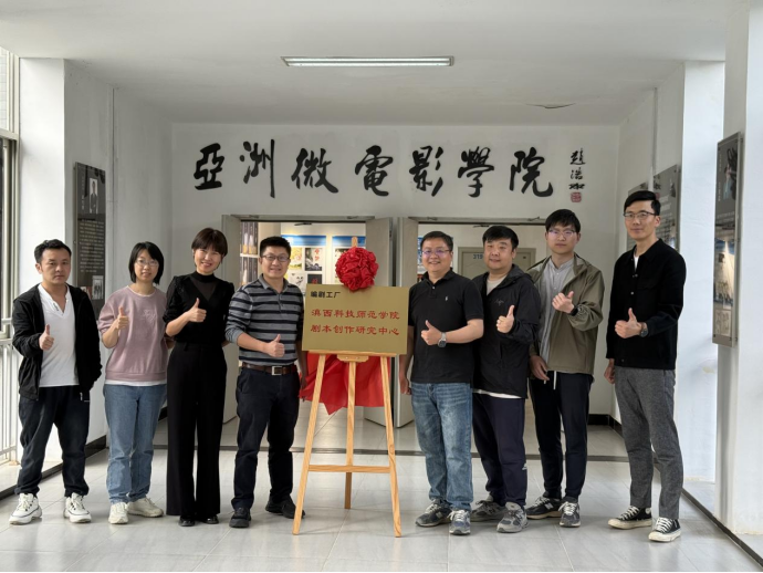 揭牌仪式上,校企双方共同揭幕“剧本创作研究中心”,这标志着学院在产教融合、影视写作教学上迈出新步伐。