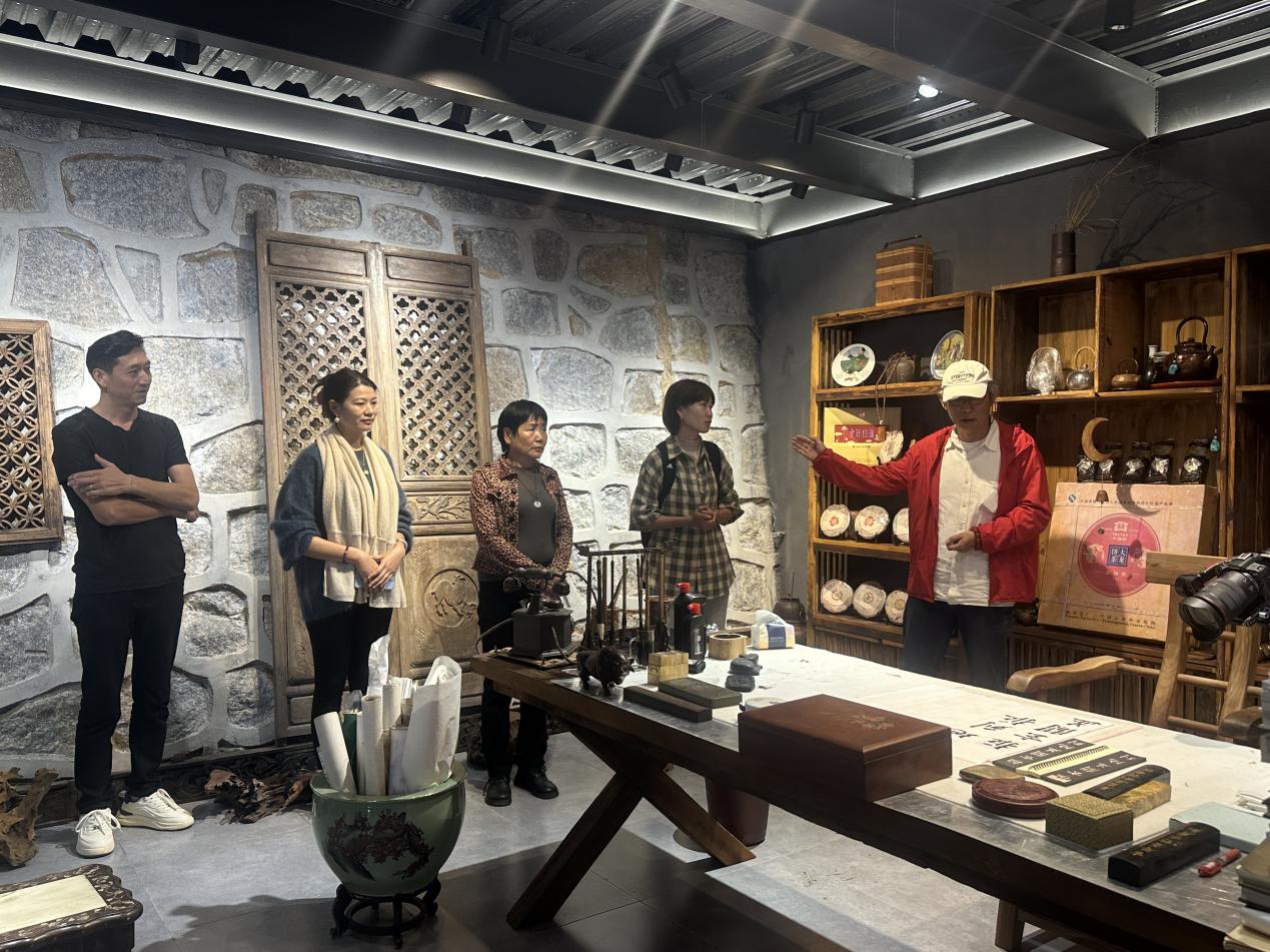 在马台村党支部书记赵跃芳的陪同下,学院师生走访了当地农产品交易中心和云南星女王茶叶有限公司,深入了解茶叶、甜笋等特色农产品的产销流程与品质特点。随后,双方围绕农产品品牌包装、宣传视频制作、直播推广等内容展开座谈,并初步达成合作意向。下一步,学院将把马台村茶产业与特色农产品纳入教学实践体系,通过设立调研课题、组织开展影像创作等项目制实训,推动教学成果向实际应用转化;马台村也将为学生提供真实场景下的实践平台,助力提升本地农产品影响力。