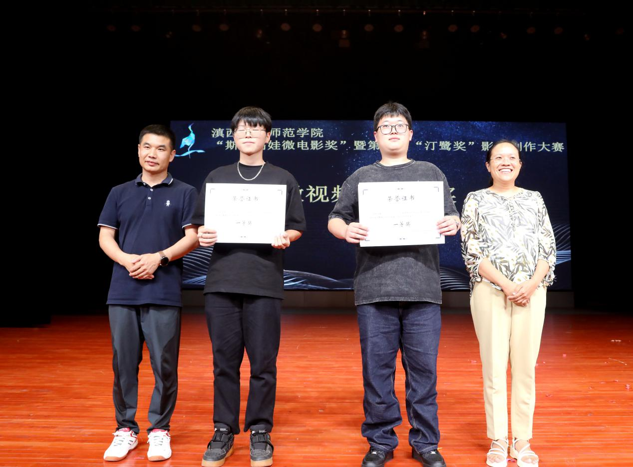 开奖嘉宾为微电影类特等奖获奖同学颁奖
