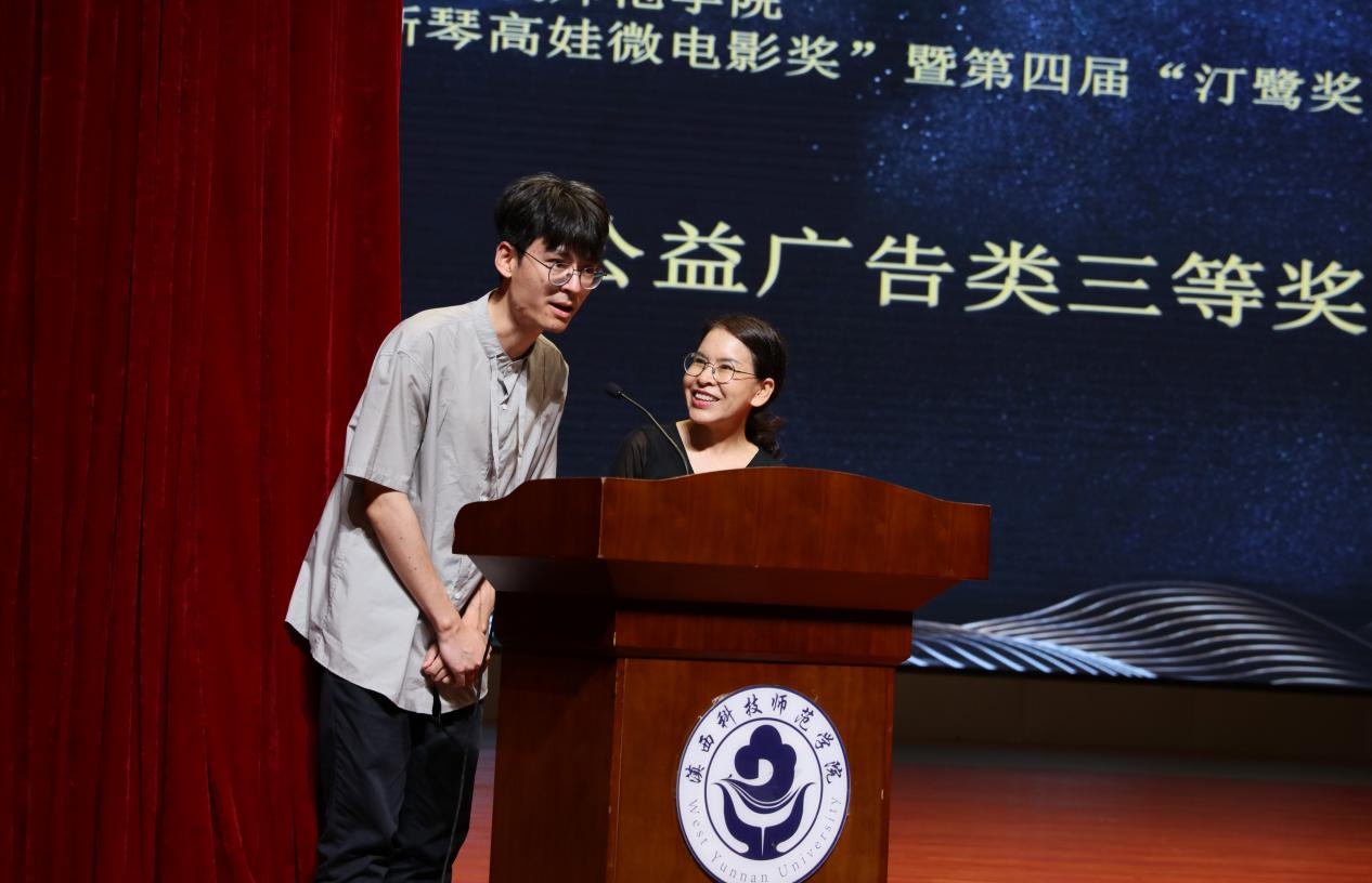 开奖嘉宾为公益广告类二等奖获奖同学颁奖