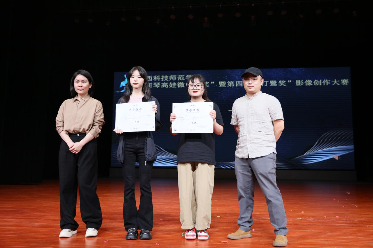 开奖嘉宾为微电影类一等奖获奖同学颁奖