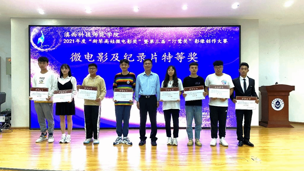 (文/张铭珉 图/张浩然、罗金文等) 微影蕴含大道,匠心谱就华章,沧江学子梦飞扬,西河汀鹭又高翔。6月20日,滇西科技师范学院2021年度“斯琴高娃微电影奖”暨第三届“汀鹭奖”影像创作大赛颁奖典礼隆重举行。学校校长、博士生导师王德强教授出席典礼并讲话。