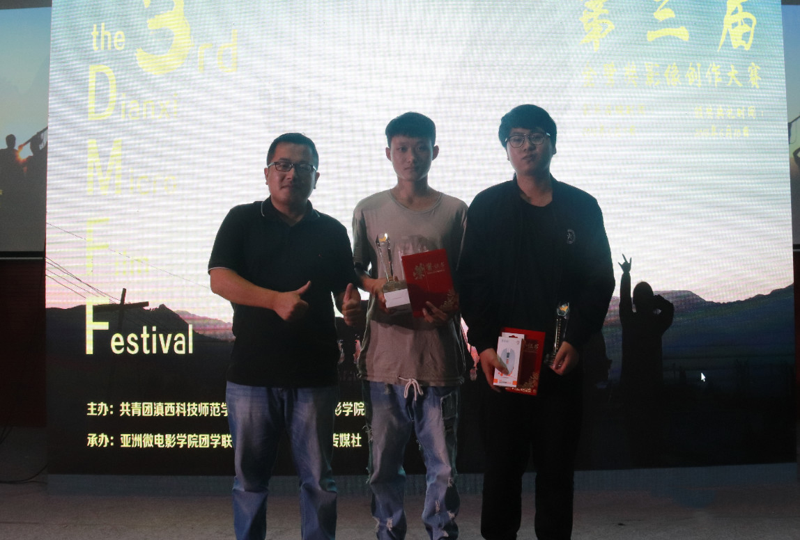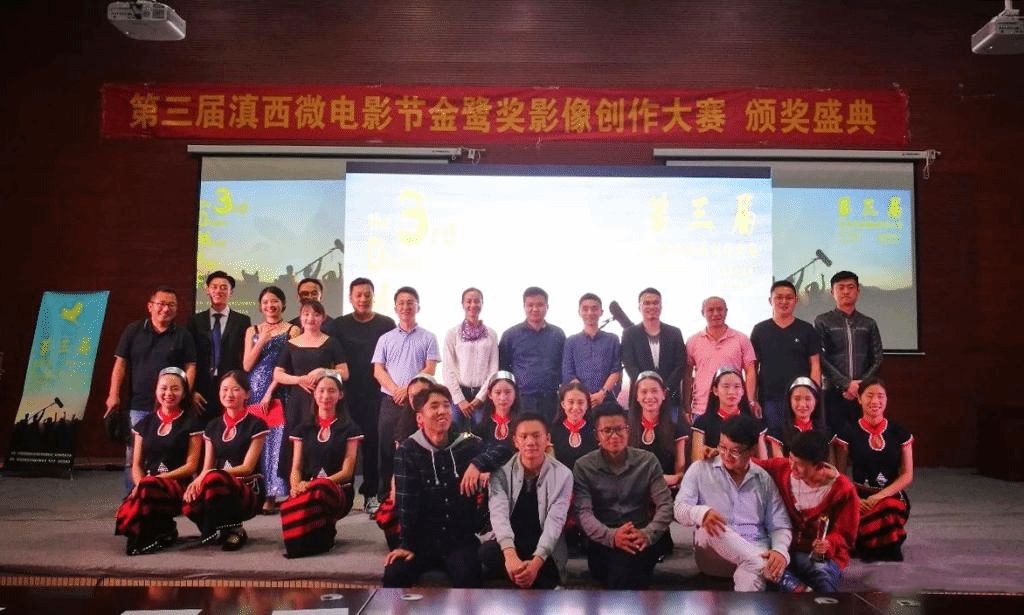 2018年6月10日晚,由亚洲微电影学院和共青团滇西科技师范学院委员会联合主办,亚洲微电影学院团学联合会和临视传媒社承办的以“光影临沧,相聚滇西”为主题的第三届滇西微电影节暨"金鹭奖"影像创作大赛颁奖典礼在同声传译室隆重举行。校团委副书记杨汉鹏、亚微学院党总支副书记刘绍彬、亚微学院副院长童绍英、临沧本土多家影视公司、新媒体平台的负责人及亚微学院师生共300余人参加活动。