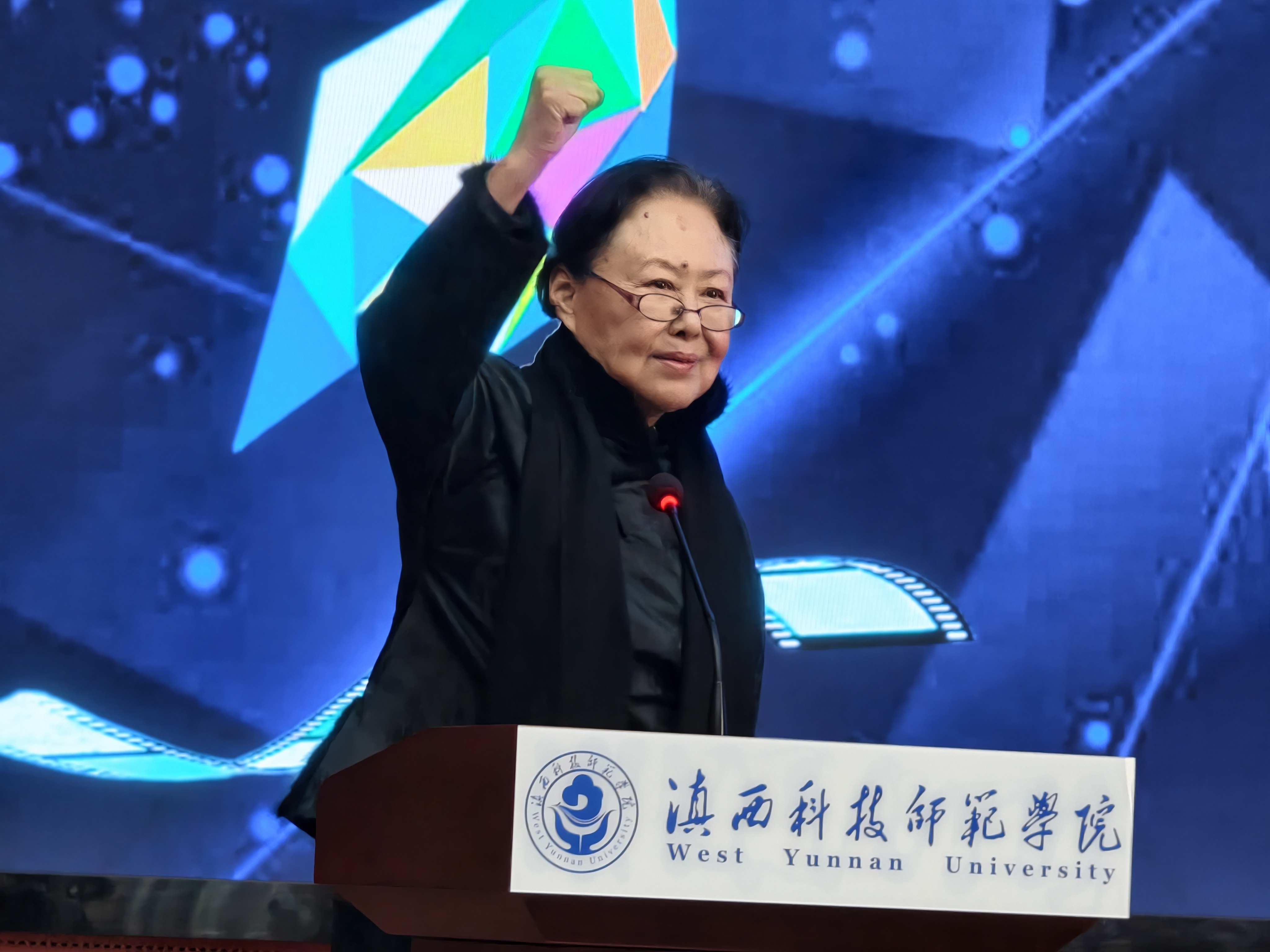 12月2日下午,滇西科技师范学院亚洲微电影学院在校园同声传译室举行了一场温馨而热烈的见面会,学院常务副院长、著名表演艺术家斯琴高娃老师与2025级新生面对面交流。校党委书记阮凤斌,学校组织部、宣传部、统战部负责人,各二级学院教师代表以及亚洲微电影学院全体师生共同参与本次活动。见面会由亚洲微电影学院党总支书记刘绍彬主持。
