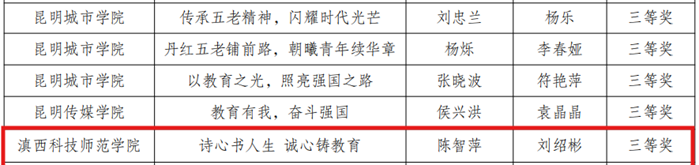 征文比赛中,孙倩同学的《大手牵小手 踔厉向前行》荣获二等奖(指导教师:魏正子);陈智萍同学的《诗心书人生 诚心铸教育》荣获三等奖(指导教师:刘绍彬)。