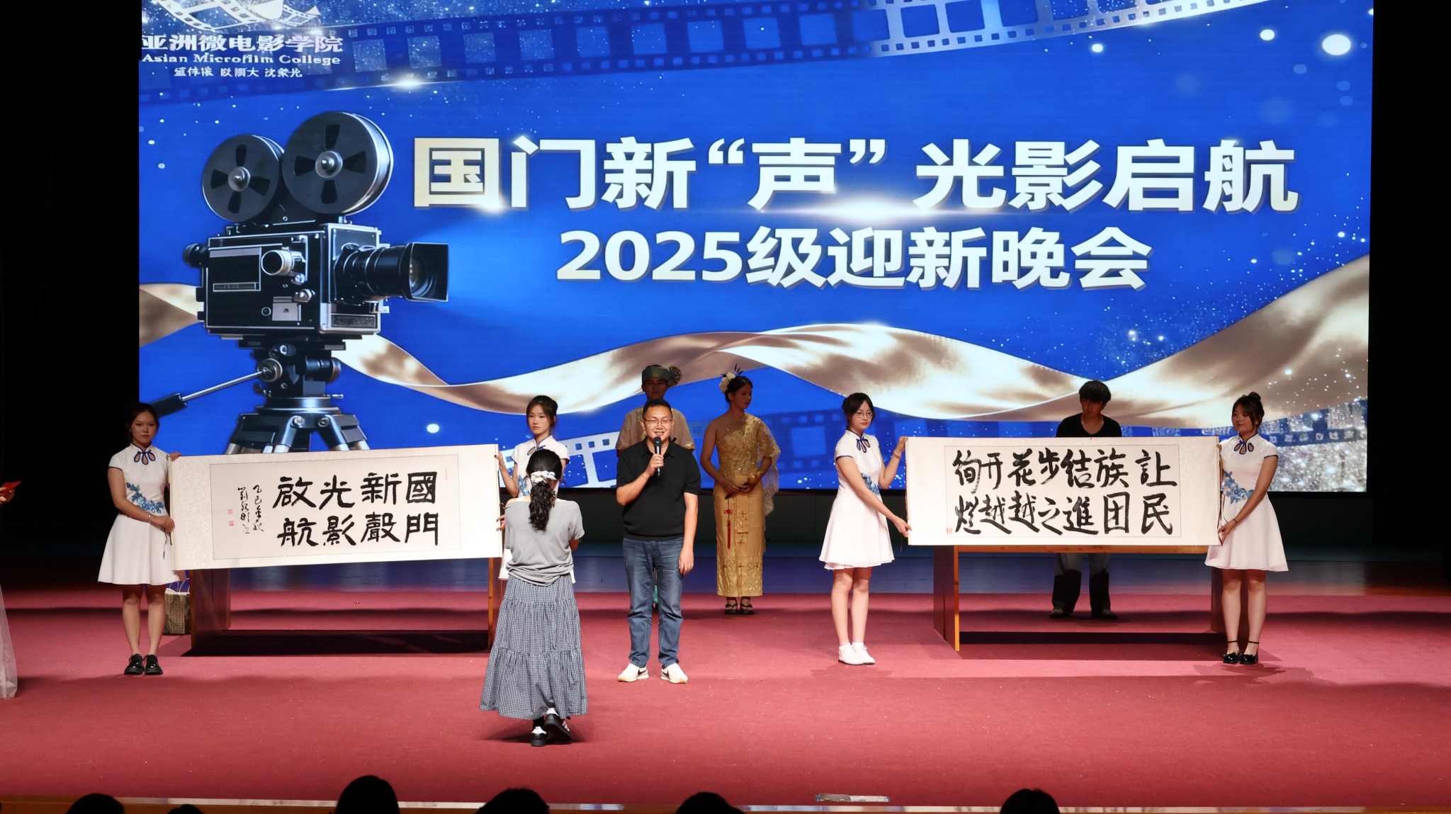 金秋送爽,丹桂溢香。9月20日晚,亚洲微电影学院以“国门新‘声’,光影启航”为主题的2025级迎新晚会在学校综合会堂精彩上演。学院全院师生欢聚一堂,共同享受了一场融合民族风情、地方特色与青春活力的视听盛宴。